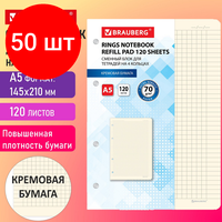 Купить Комплект 50 шт, Сменный блок для тетрадей на 4 кольцах А5 120 л, BRAUBERG, повышенной плотности, кремовый, 403639 с доставкой по всей России.