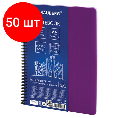 Купить Комплект 50 шт, Тетрадь А5, 80 листов, BRAUBERG «Metropolis», спираль пластиковая, клетка, обложка пластик, фиолетовый, 403399 с доставкой по всей России.