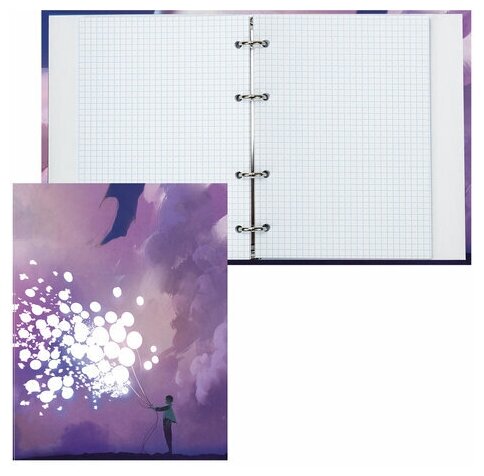 Блок состоит из 160 листов офсетной бумаги белого цвета плотностью 60 г/м2. Линовка - клетка. Жесткая книжная обложка выполнена из переплетного картона и покрыта глянцевой пленкой. Формат А5 является стандартным и обеспечивает комфортное ношение в рюкзаке/ранце или папке. Оборудована кольцевым механизмом с 4-мя кольцами для подшивки сменных блоков, что позволит носить на учебу/работу всего одну тетрадь с возможностью добавлять и менять листы.
