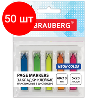 Комплект 50 шт, Закладки клейкие BRAUBERG неоновые пластиковые, 48х10 мм, 5 цветов х 20 листов, в пластиковом диспенсере, 122735: сравнение цен, характеристики, фото, актуальное наличие и цены.