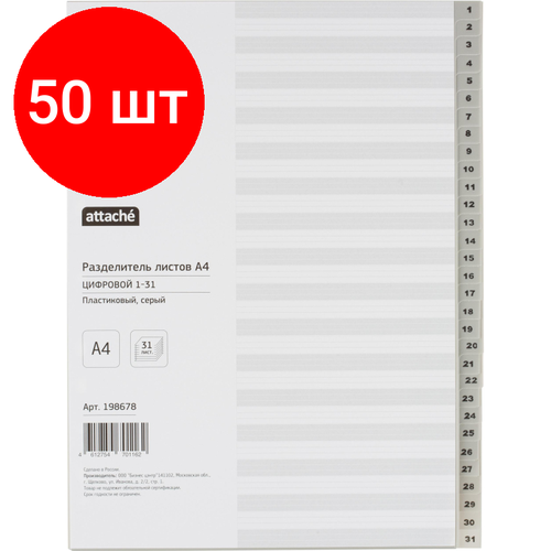 Купить Комплект 50 упаковок, Разделитель листов из сер. пласт. с индексами Attache, А4, цифровой 1-31 с доставкой по всей России.