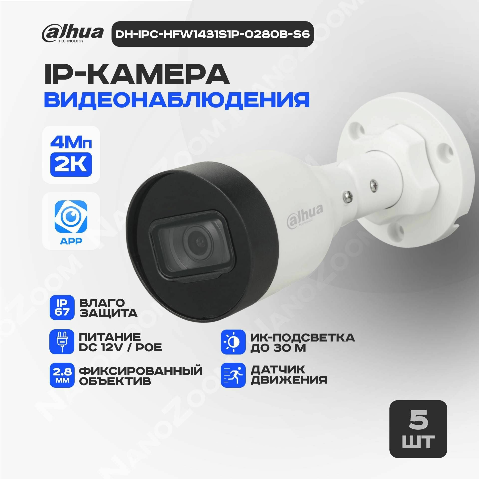 Комплект 5ШТ Dahua DH-IPC-HFW1431S1P-0280B-S6 4Мп 2,8 мм — камера видеонаблюдения IP уличная, цифровая цилиндрическая IP-видеокамера для улицы ИК-подсветка, 2688×1520: сравнение цен, характеристики, фото, актуальное наличие и цены.