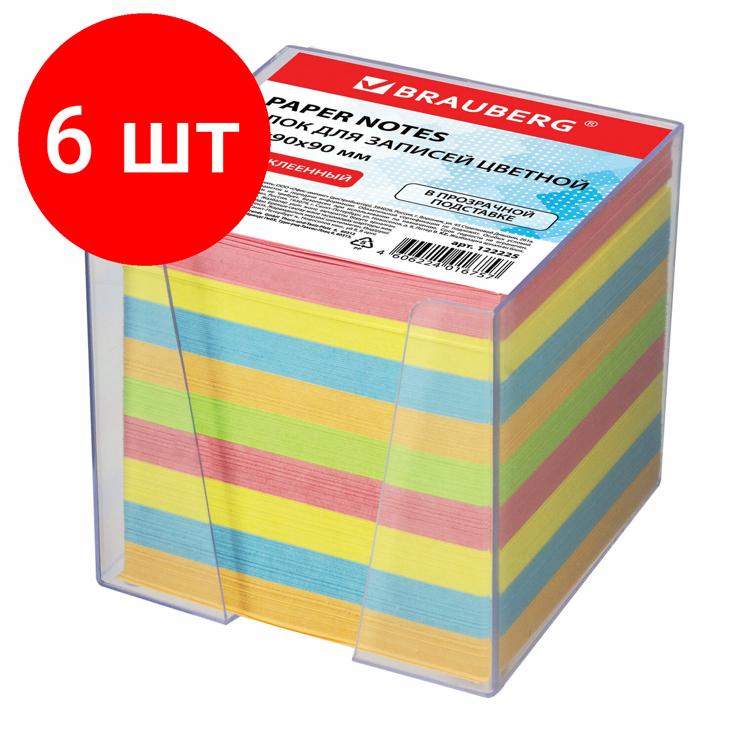 Комплект 6 шт, Блок для записей BRAUBERG в подставке прозрачной, куб 9х9х9 см, цветной, 122225: сравнение цен, характеристики, фото, актуальное наличие и цены.