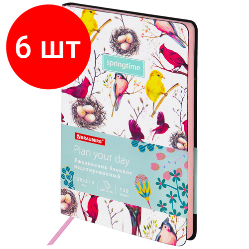 Купить Комплект 6 шт, Ежедневник недатированный А5 (138х213 мм), BRAUBERG VISTA, под кожу, гибкий, 136 л, «Birds», 112021 с доставкой по всей России.