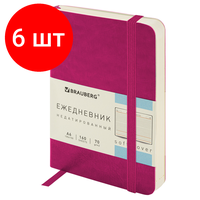 Внимание! Товар продается комплектом:[Ежедневник недатированный с резинкой 100х150 А6 под кожу розовый BRAUBERG Metropolis, 113302] X 6 шт. Ежедневник BRAUBERG серии "Metropolis Ultra" с мягкой интегральной обложкой под гладкую кожу и резинкой-фиксатором - стильное и компактное решение для эффективного планирования и создания имиджа пунктуального человека.
