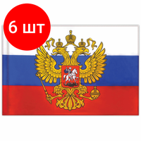 Купить Комплект 6 шт, Флаг России 90х135 см с гербом, прочный с влагозащитной пропиткой, полиэфирный шелк, STAFF, 550226 с доставкой по всей России.