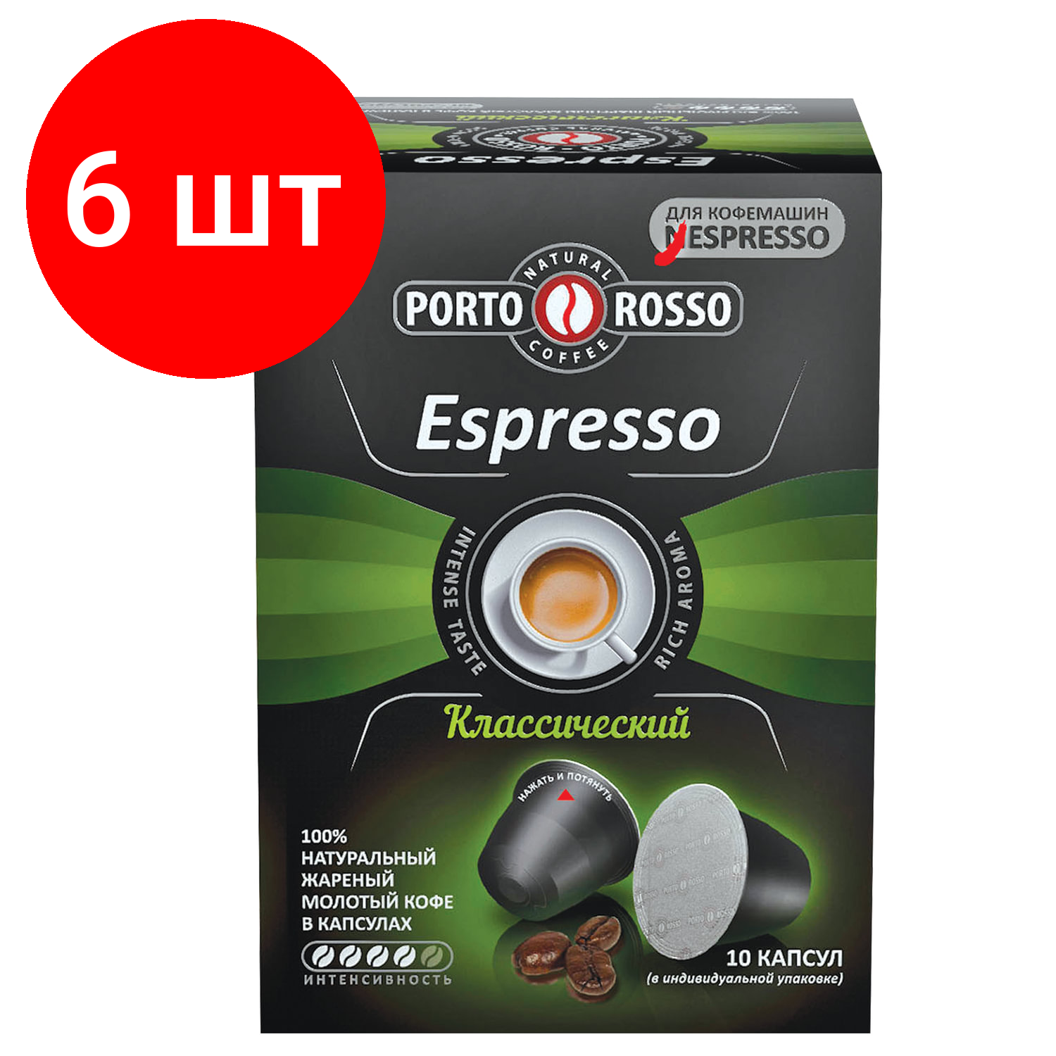 Комплект 6 шт, Кофе в капсулах PORTO ROSSO Espresso для кофемашин Nespresso, 10 порций: сравнение цен, характеристики, фото, актуальное наличие и цены.