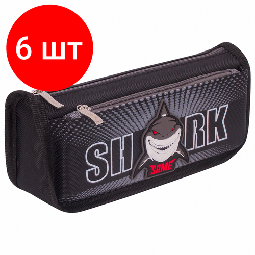 Купить Комплект 6 шт, Пенал юнландия, 2 отделения, полиэстер, «Shark», черный, 21х6х9 см, 270271 с доставкой по всей России.