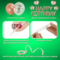 Купить Комплект 6 шт, Шары воздушные набор для декора «Happy Birthday», 43 шара, розовое золото, BRAUBERG KIDS, 591899 с доставкой по всей России.
