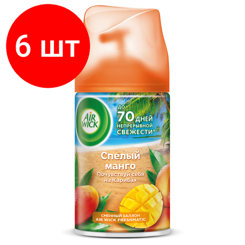 Купить Комплект 6 шт, Сменный баллон для освежителя воздуха Airwick Freshmatic «Тропические фантазии. Спелый манго», 250мл с доставкой по всей России.
