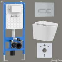 Комплект 6 в 1 инсталляция, унитаз безободковый белый BURGOS ALTO, шумоизоляция, сиденье-микролифт, крепления, клавиша хром матовый из ABS пластика ESTI-R, IBERICA BLANCA: сравнение цен, характеристики, фото, актуальное наличие и цены.
