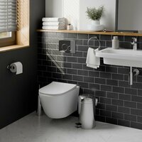 Комплект инсталляции IBERICA BLANCA с подвесным унитазом BILBAO ALTO (арт. IB. BLA.234.1B1) и клавишей смыва INOX-O цвета хром глянцевый из нержавеющей стали (арт. IB. B081.003.001 ). Подвесной унитаз с системой смыва Tornado выполнен из белого фарфора, и имеет такие особенности как: • система смыва Tornado на 20% эффективнее смыва обычных унитазов • чаша с технологией антивсплеск минимизирует возможность брызг и обеспечивает комфорт во время использования • наноглазированное антибактериальное покрытие унитаза обеспечивает непревзойденный уровень гигиены, предотвращая размножение бактерий • в комплекте тонкое сидение из дюропласта soft close Клавиша смыва изготовлена из ударопрочного ABS-пластика, устойчива к внешним воздействиям, имеет привлекательный дизайн, что дополнит современный интерьер туалетных комнат. На матовой поверхности почти не остаются отпечатки пальцев по сравнению с глянцевой, это упрощает уход и позволяет сохранить первозданный вид. Инсталляция SILENCIO представляет собой надежное и практичное решение для вашей ванной комнаты. Главное преимущество перед другими брендами заключаются в следующих особенностях: • совместима со всеми типами подвесных унитазов, межосевое расстояние которых составляет 180 или 230 мм. • независимая регулировка малого и полного смыва: малый смыв от 3 до 4,5 л, большой от 6 до 9 л, что делает ее эффективной и экономичной, позволяя настроить смыв в зависимости от ваших нужд • сливной бачок имеет шумоизоляцию, так же в комплекте идет шумоизоляционная пластина для подвесного унитаза • сливной клапан для защиты от перелива • впускной угловой кран позволяет перекрыть поток воды в бачок отдельно от общей системы водоснабжения • фильтр грубой очистки предустановлен с завода • ножки рамы регулируются в диапазоне от 0 до 200мм. • рама инсталляции выполнена из высокопрочной стали с антикоррозийным покрытием, что обеспечивает надежность и долговечность