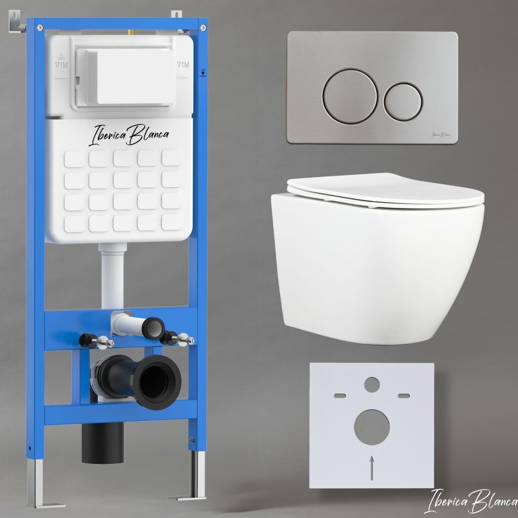Комплект 6 в 1 инсталляция, унитаз торнадо белый BILBAO ALTO, шумоизоляция, сиденье микролифт, крепления, клавиша хром матовый, нержавеющая сталь INOX-O, IBERICA BLANCA: сравнение цен, характеристики, фото, актуальное наличие и цены.
