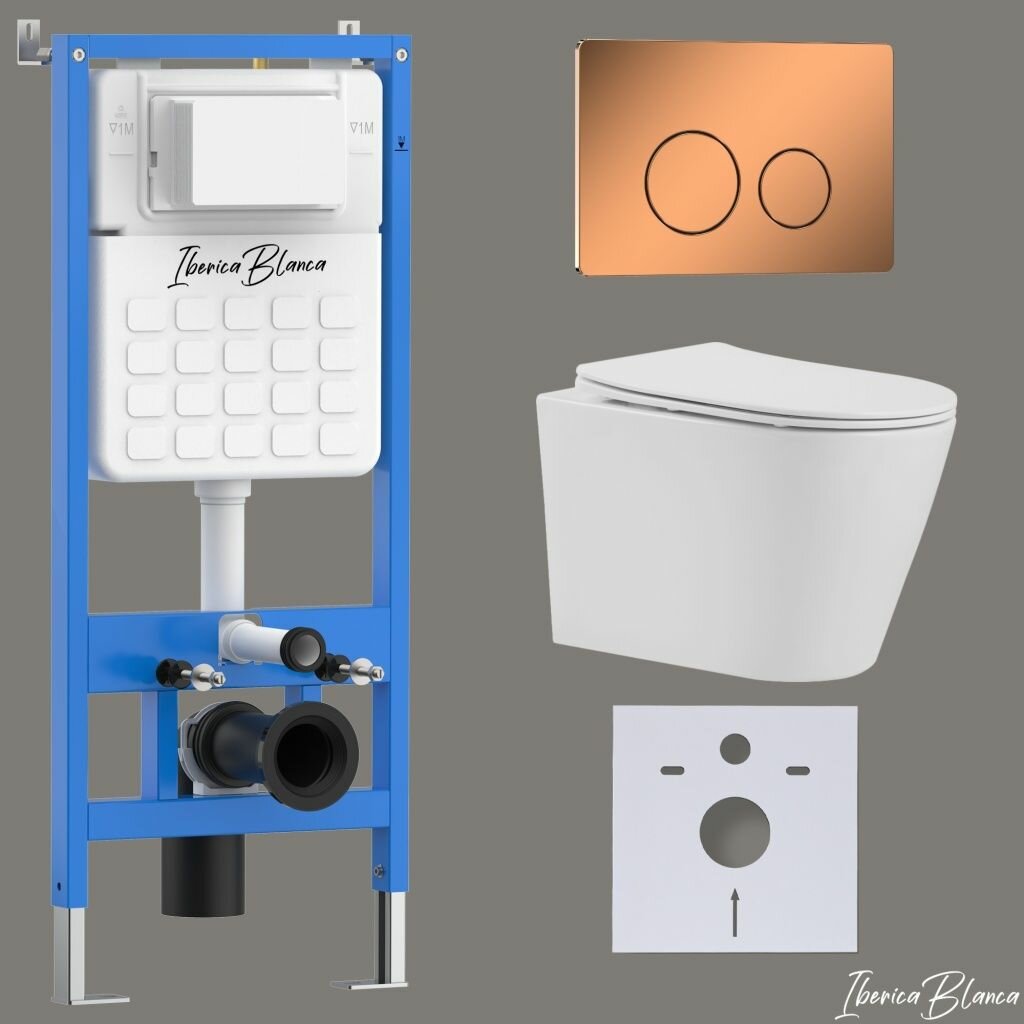 Купить Комплект 6 в 1 инсталляция, унитаз торнадо безободковый белый BURGOS ALTO (IB. BRA.234.1B1), клавиша смыва розовое золото, глянцевый, нержавеющая сталь INOX-О (IB. B081.007.001) IBERICA BLANCA с доставкой по всей России.