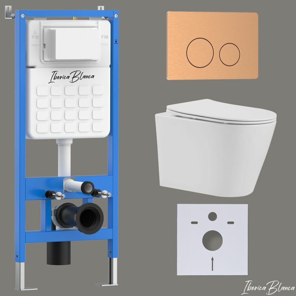 Купить Комплект 6 в 1 инсталляция, унитаз торнадо безободковый белый BURGOS ALTO (IB. BRA.234.1B1), клавиша смыва розовое золото, матовый, нержавеющая сталь INOX-О (IB. B081.007.002) IBERICA BLANCA с доставкой по всей России.