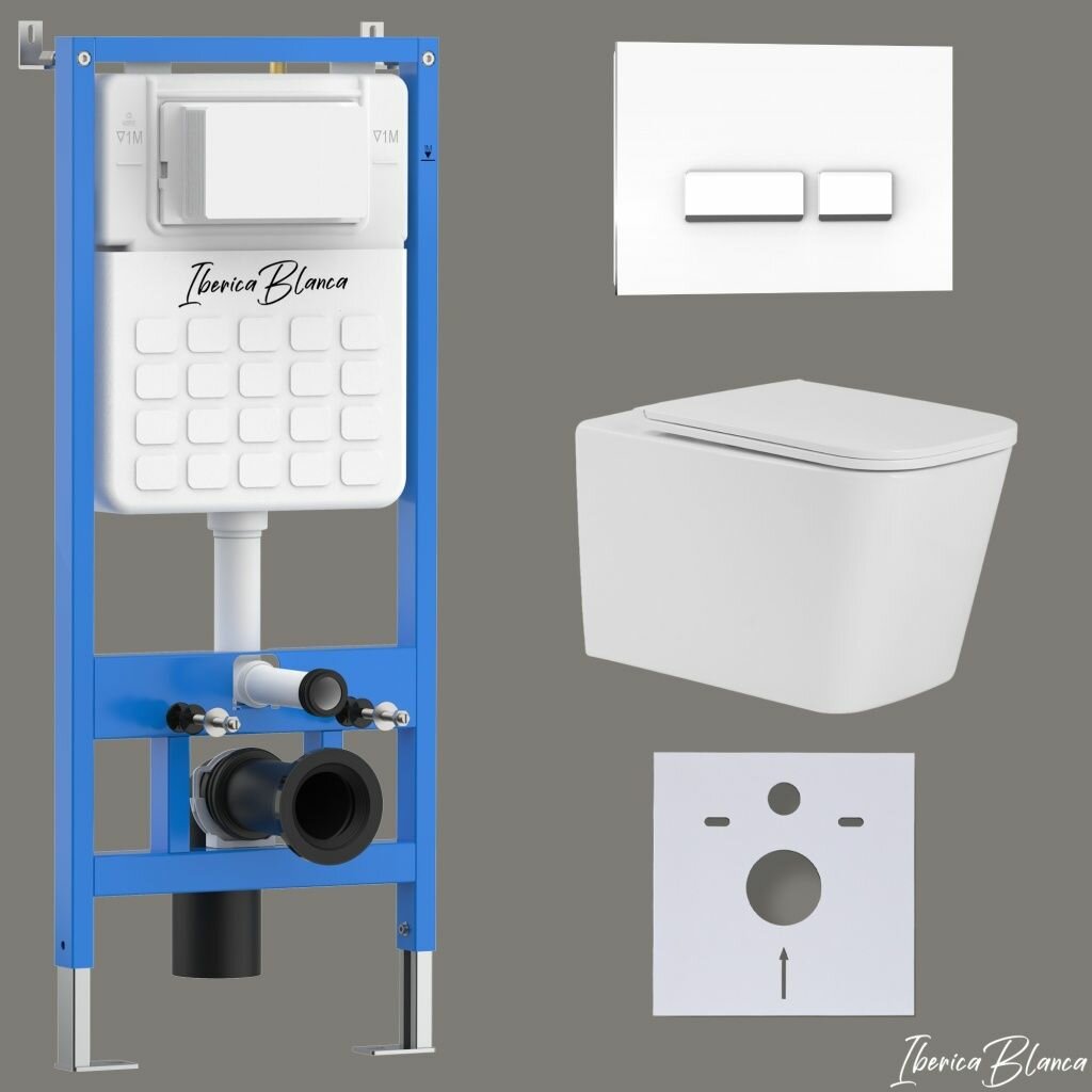 Комплект 6 в 1 инсталляция, унитаз торнадо безободковый белый TOLEDO ALTO (IB. TLA.234.1B1), клавиша смыва белая, глянцевая, стекло CRYSTAL-R (IB. B022.001.00) IBERICA BLANCA: сравнение цен, характеристики, фото, актуальное наличие и цены.