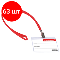 Комплект 63 шт, Бейдж горизонтальный (60х90 мм), на красной ленте 45 см, BRAUBERG, 231155: сравнение цен, характеристики, фото, актуальное наличие и цены.