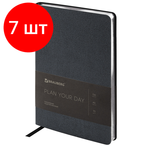 Комплект 7 шт, Ежедневник недатированный А5 138х213мм BRAUBERG Metallic, 136л, гибкий, под кожу, чер, 113374: сравнение цен, характеристики, фото, актуальное наличие и цены.