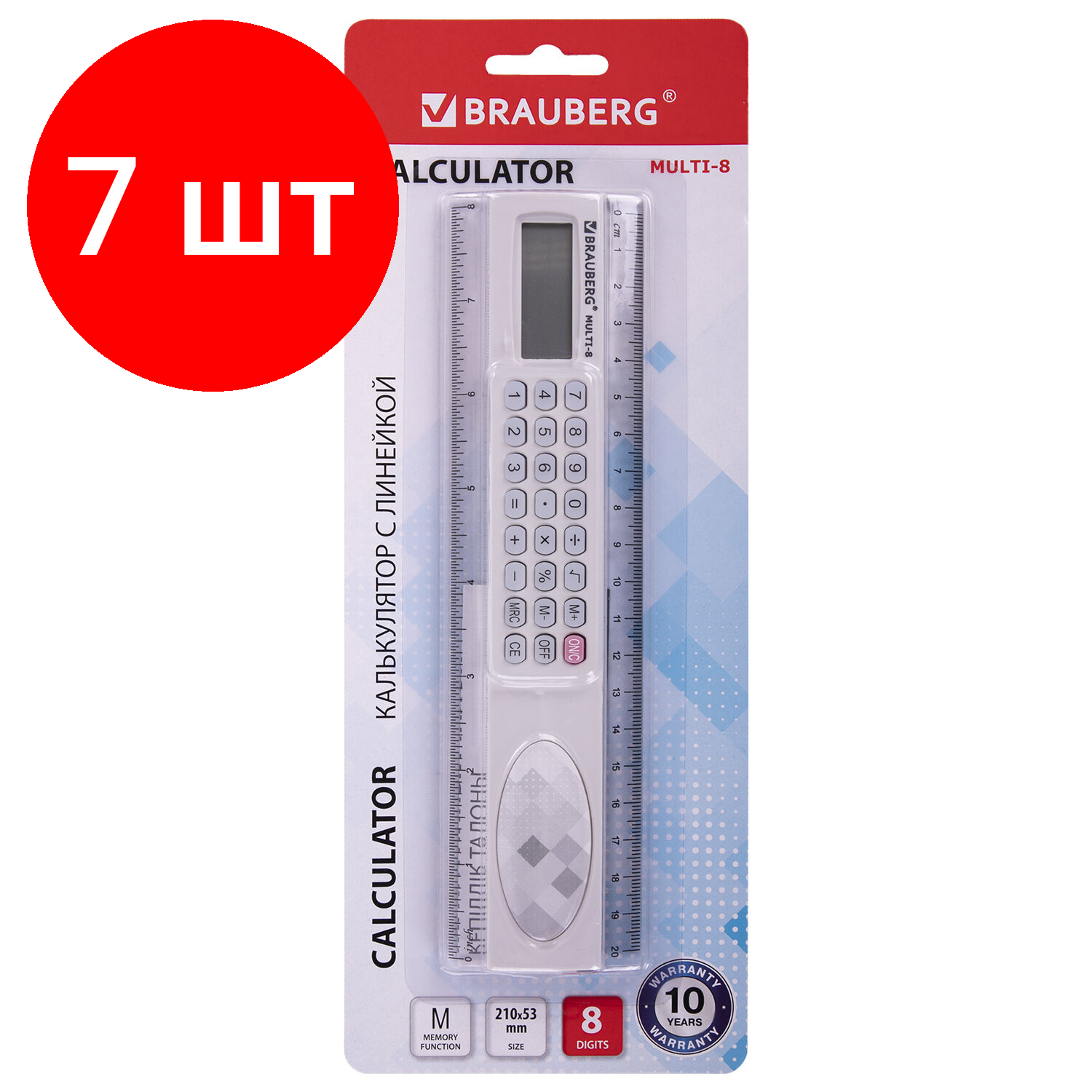 Комплект 7 шт, Линейка с калькулятором 20 см BRAUBERG MULTI-8 (53×210 мм), 8 разрядов, 250540: сравнение цен, характеристики, фото, актуальное наличие и цены.