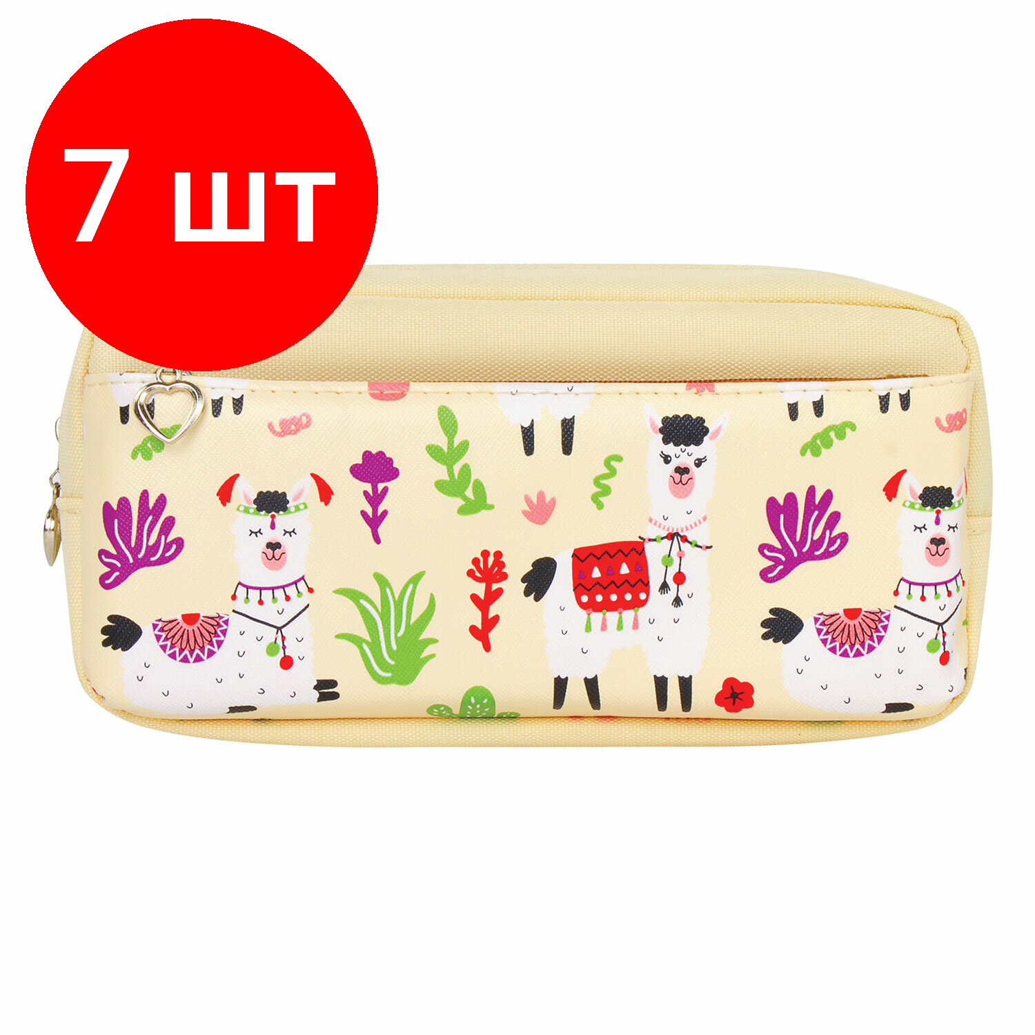 Комплект 7 шт, Пенал-косметичка юнландия, 2 отделения, мягкий, «Ламы», бежевый, 20х6х9 см, 228981: сравнение цен, характеристики, фото, актуальное наличие и цены.