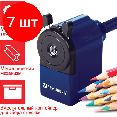 Купить Комплект 7 шт, Точилка механическая BRAUBERG «JET», металлический механизм, корпус синий, 229570 с доставкой по всей России.