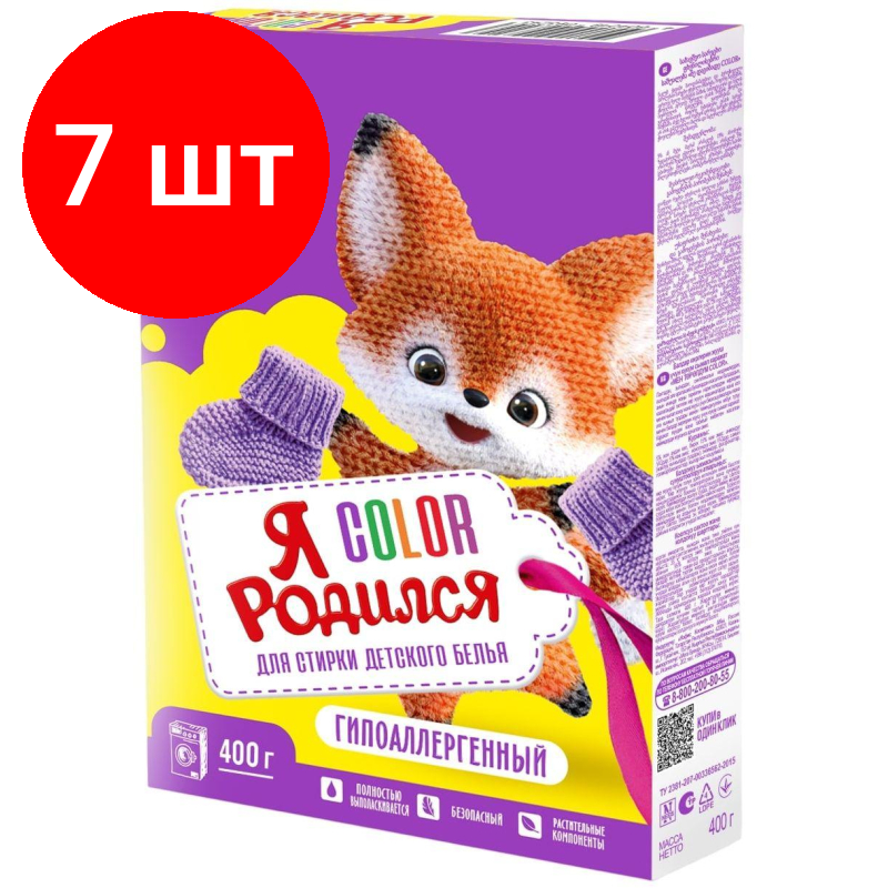 Купить Комплект 7 штук, Порошок стиральный Я родился Color универс 400гр с доставкой по всей России. Комплект 7 штук, Порошок стиральный Я родился Color универс 400гр: сравнение цен, характеристики, фото, актуальное наличие и цены.