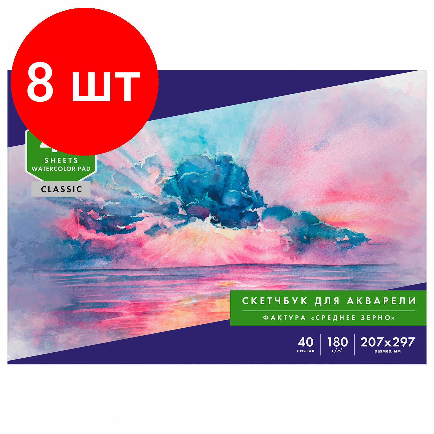 Купить Комплект 8 шт, Альбом для акварели, бумага 180 г/м2, 207х297 мм, 40 л, склейка, BRAUBERG ART CLASSIC, 105929 с доставкой по всей России.
