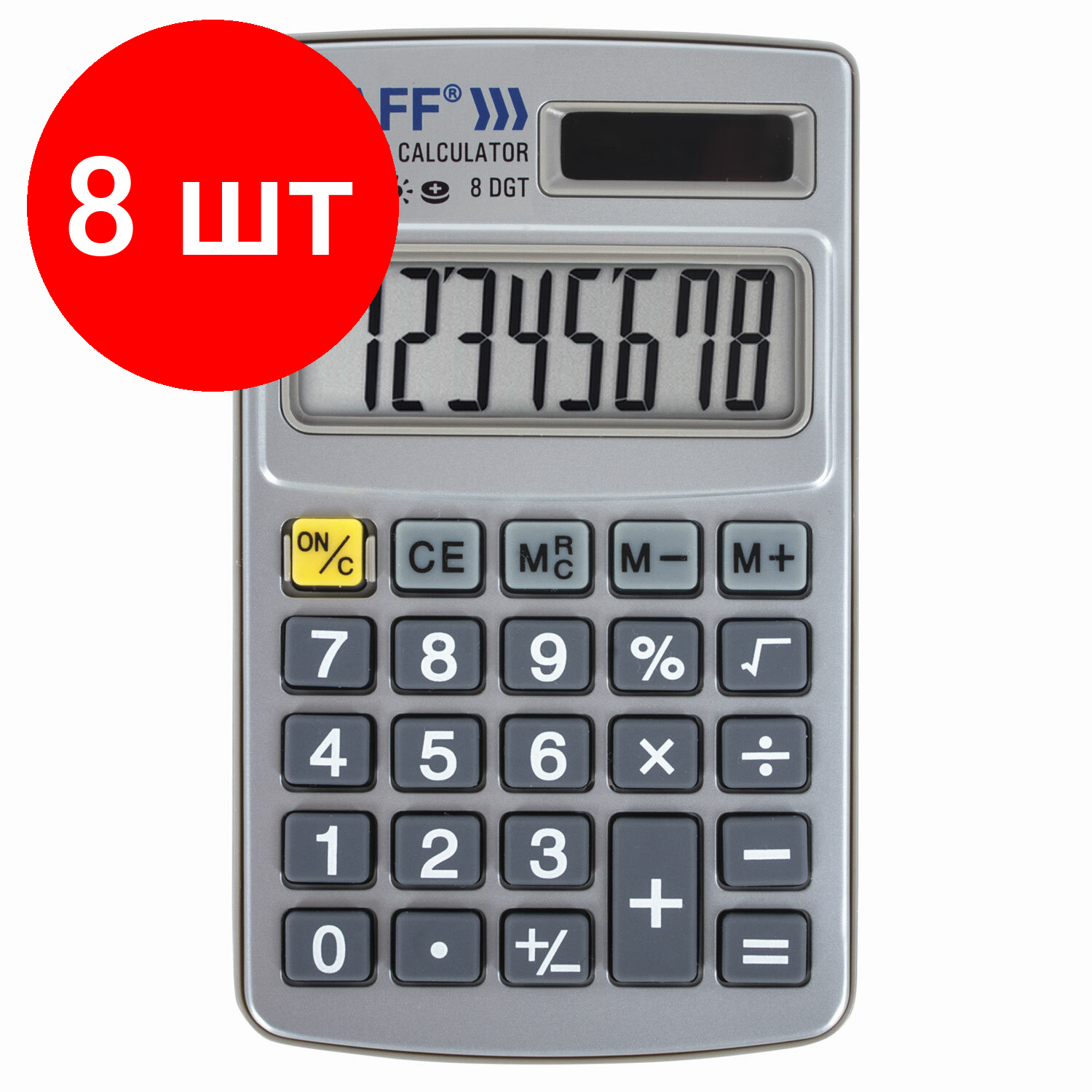 Комплект 8 шт, Калькулятор карманный металлический STAFF STF-1008 (103х62 мм), 8 разрядов, двойное питание, 250115: сравнение цен, характеристики, фото, актуальное наличие и цены.