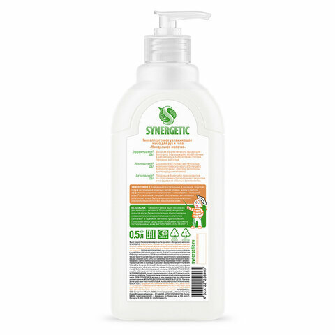 Комплект 8 шт, Мыло жидкое 500мл SYNERGETIC «Миндальное молочко», гипоаллергенное, биоразлагаемое, доз, 105058: сравнение цен, характеристики, фото, актуальное наличие и цены.