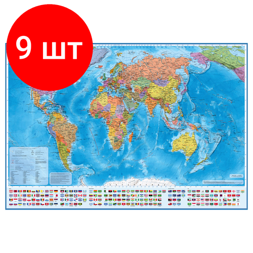 Купить Комплект 9 шт, Карта «Мир» политическая Globen, 1:28млн, 1170*800мм, интерактивная, европодвес с доставкой по всей России.