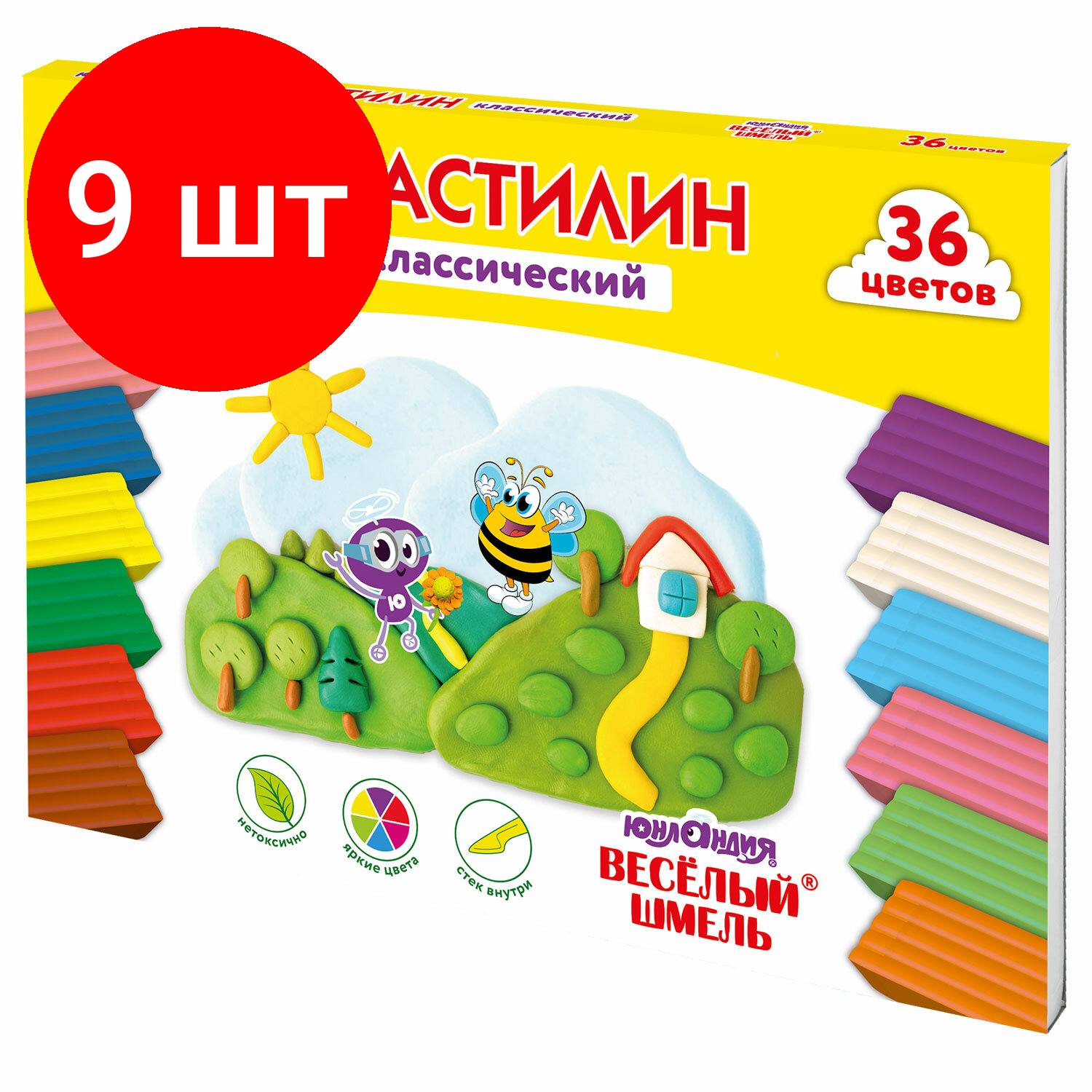Внимание! Товар продается комплектом:[Пластилин классический юнландия "весёлый шмель", 36 цветов, 720 грамм, со стеком, высшее качество, 106434] X 9 шт.
