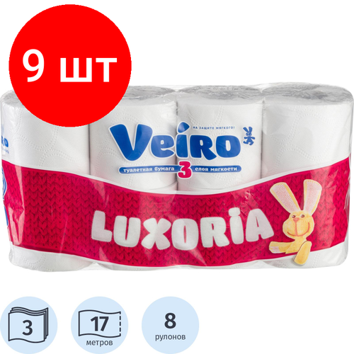 Купить Комплект 9 упаковок, Бумага туалетная Veiro Luxoria 3сл бел цел втул 17м 8рул/уп 5с38 с доставкой по всей России.