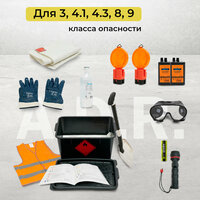 Набор АДР для знаков опасности № 3, 4.1, 4.3, 8, 9 для 1 человека (бензин, дизель); включает в себя: Жилет сигнальный - 1шт. Фонарь светодиодный ручной - 1шт. Перчатки химостойкие - 1 пара. Очки защитные - 1шт. Раствор для промывания глаз с ванночкой, 500мл - 1шт. Дренажная ловушка - 1шт. Контейнер сборный, для дренажной ловушки - 1шт. Сигнальный фонарь - 2шт. Батарейка 4R25 - 2 шт. Лопата искробезопасная - 1шт. Инструкция ДОПОГ с аварийной карточкой - 1шт. Батарейка пальчиковая - 2 шт. Сумка для набора ADR (пустая) - 1шт . Данное изделие имеет сертификат ГОСТ, как соответствующее всем требованиям по ДОПОГ.