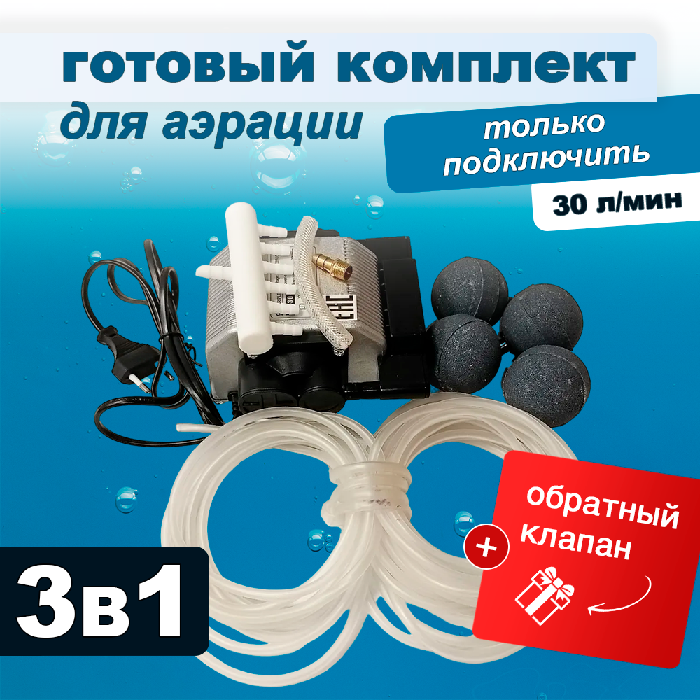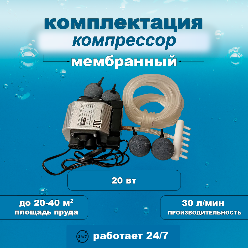 Комплект аэрации для пруда, компрессор + аэратор + шланг, 30 л/мин: сравнение цен, характеристики, фото, актуальное наличие и цены.