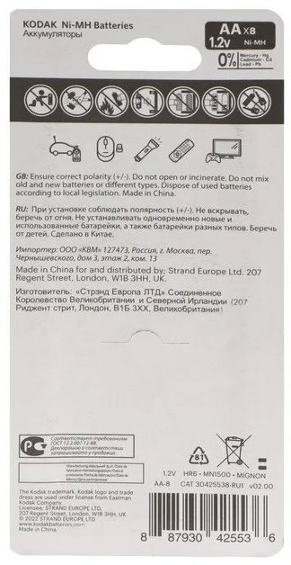 Комплект аккумуляторных батареек Kodak HR6-8BL 2700mAh: сравнение цен, характеристики, фото, актуальное наличие и цены.