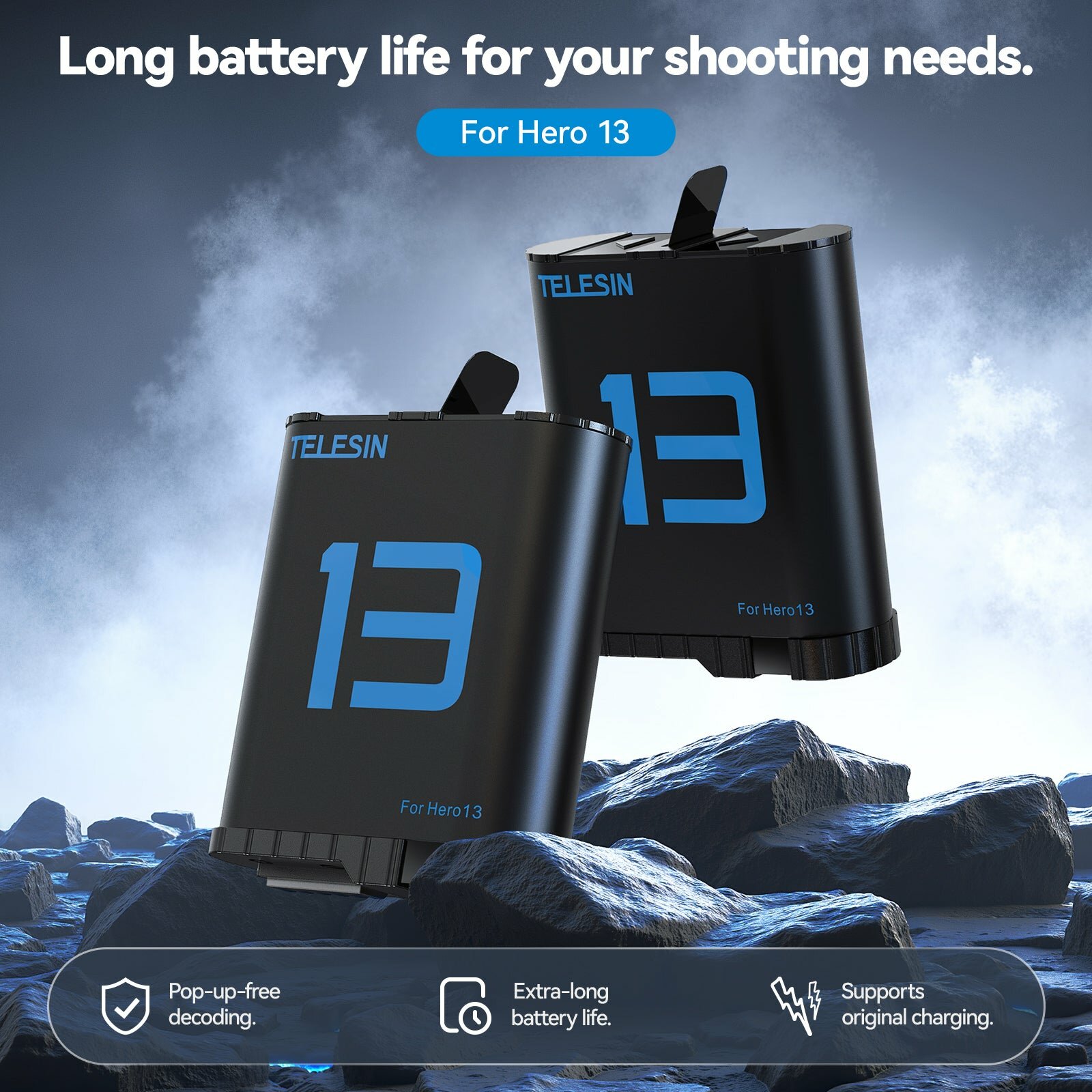 Комплект аккумуляторов Telesin, 5шт, для GoPro Hero 13, 1900 mAh, S0-BTR-06-TGP: сравнение цен, характеристики, фото, актуальное наличие и цены.