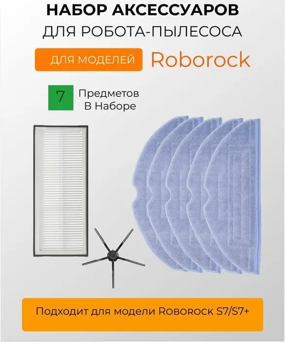 Roborock s7 аксессуары для робот пылесоса Xiaomi , S7 Plus : тряпка -5 шт, боковая щетка чёрная , hepa фильтр: сравнение цен, характеристики, фото, актуальное наличие и цены.