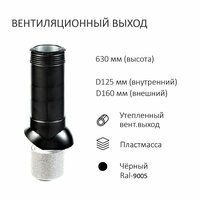 Комплект активной вентиляции: Турбодефлектор TD160, вент. выход утепленный высотой Н-700, для скатной кровли, черный - служит для увеличения тяги в вентиляционном канале частного или многоквартирного дома, в погребе, гараже, курятнике, коровнике, конюшне, предбаннике, в парилке бани, внешней вентиляции септика и складских помещениях.
