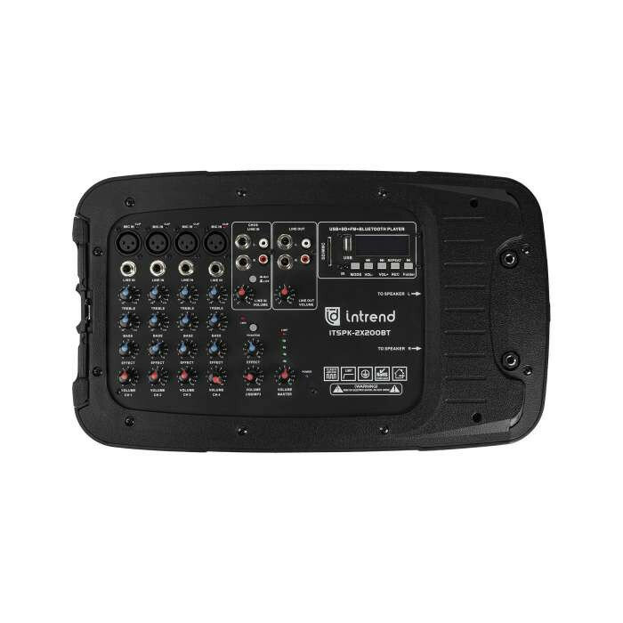 Комплект акустических систем INTREND [ITSPK-2X200BT] портативный, 400 Вт, 2 х 10″+0.75″, 6-канальный микшер, фантомное питание +48V, 24-bit FX, MP3 плеер, Bluetooth, 1 проводной микрофон, 2 стойки для а/с: сравнение цен, характеристики, фото, актуальное наличие и цены.