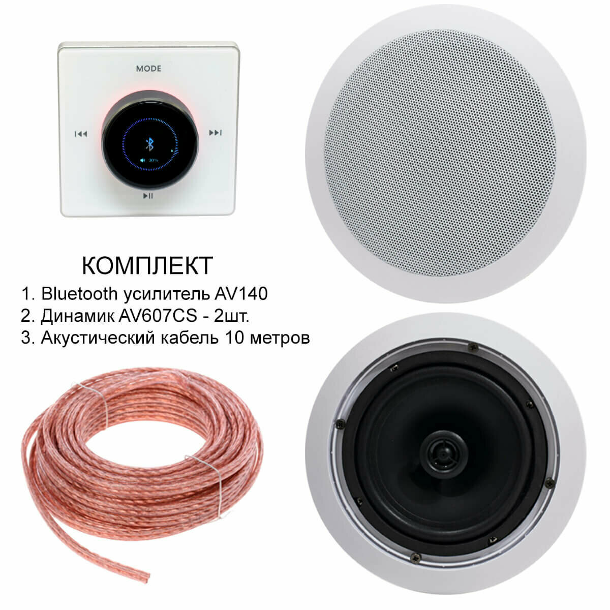 Купить Комплект акустики для зала и спальни AVEL из двух потолочных динамиков AV607CS, усилителя AVS140 и акустического кабеля с доставкой по всей России. Комплект акустики для зала и спальни AVEL из двух потолочных динамиков AV607CS, усилителя AVS140 и акустического кабеля: сравнение цен, характеристики, фото, актуальное наличие и цены.