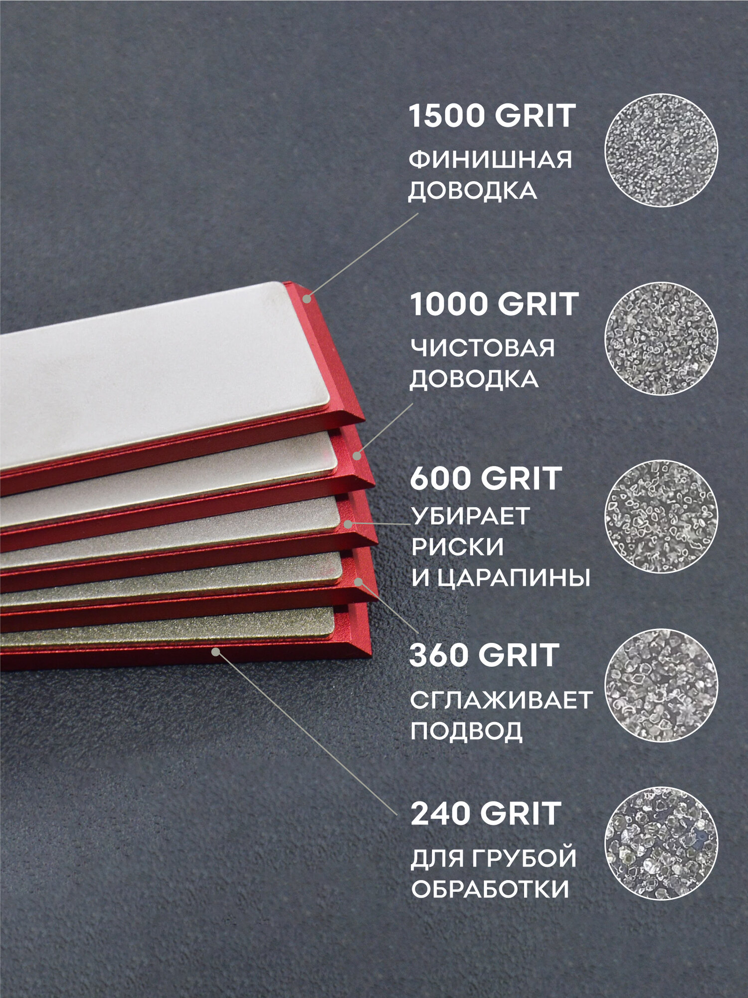 - 1500 grit — предназначен для финишной доводки режущей кромки.