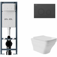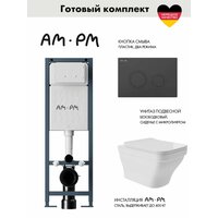 Комплект AM.PM I012711.0138 ErgoFit инсталляция для унитаза с клавишей ErgoFit L пластик, черный матовый + Унитаз 520*370 безободковый, сиденье Soft-Close, белый глянцевый, квадрат с выступом