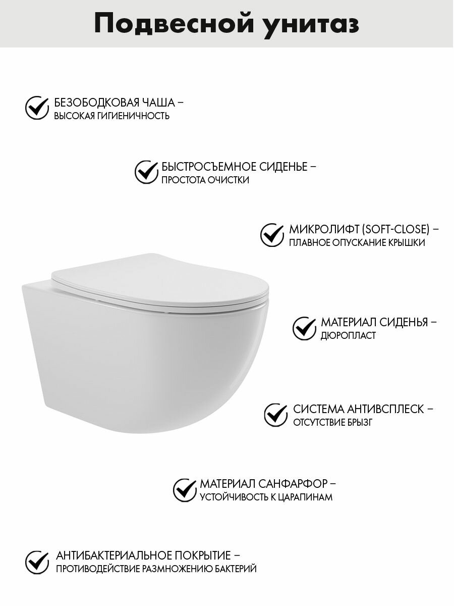 Комплект AM.PM I012711.0138 ErgoFit инсталляция для унитаза с клавишей ErgoFit L пластик, черный матовый + Унитаз подвесной 525*360 безободковый, сиденье Soft-Close, белый глянцевый, форма овал