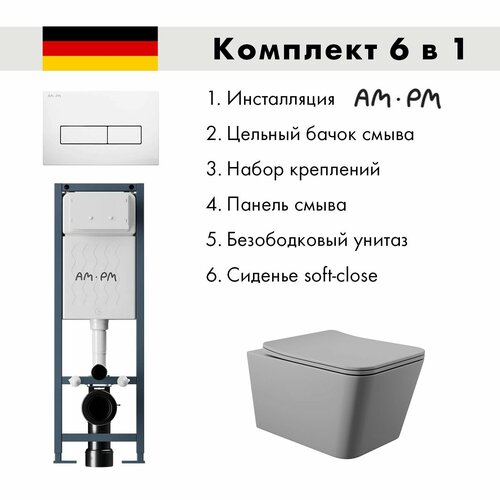 Купить Комплект AM.PM I012711.0301 ErgoFit инсталляция для унитаза с клавишей ErgoFit M пластик, белый глянцевый + Унитаз 520*370 безободковый, сиденье Soft-Close, серый матовый, квадрат с доставкой по всей России. Комплект AM.PM I012711.0301 ErgoFit инсталляция для унитаза с клавишей ErgoFit M пластик, белый глянцевый + Унитаз 520*370 безободковый, сиденье Soft-Close, серый матовый, квадрат: сравнение цен, характеристики, фото, актуальное наличие и цены.