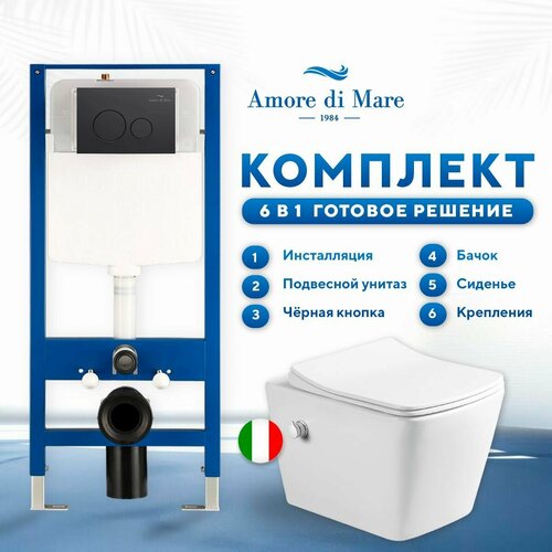 Купить Комплект Amore di Mare 6 в 1: инсталляция QuickFit 50114, безободковый унитаз Garda Bidet P310-X, кнопка черная 303MB с доставкой по всей России.