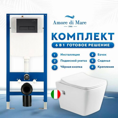 Купить Комплект Amore di Mare 6 в 1: инсталляция QuickFit 50114, безободковый унитаз Garda Bidet P310-X, кнопка черная 404MB с доставкой по всей России.