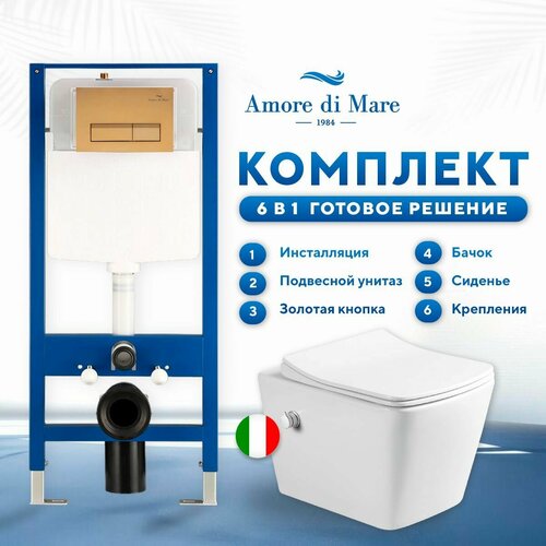 Комплект Amore di Mare 6 в 1: инсталляция QuickFit 50114, безободковый унитаз Garda Bidet P310-X, кнопка золото 404G: сравнение цен, характеристики, фото, актуальное наличие и цены.