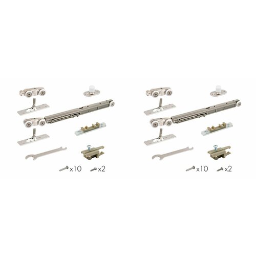 Система Comfort-PRO SOFT Light (СЕТ 3) с плавным ходом в одну сторону предназначена для раздвижных деревянных межкомнатных дверей. Включает в себя: стандартный ролик с нейлоновыми колесами и подшипниками, и ролик с доводчиком; крепления и стопоры для них; нижний ролик для направления хода полотна. Выбор работы доводчика на открывание или закрывание зависит от личных предпочтений и определяется в момент установки. Приобретается как отдельная самостоятельная система для дверей. Верхние направляющие Comfort-PRO и нижние Comfort R выписываются отдельно. Вся фурнитура систем Comfort-PRO изготовлена из прочных высококачественных материалов, что говорит о надежности и долговечности ее работы. ажно: Для корректной установки системы необходимо убедиться, что дверные полотна и стены, которые будут взаимодействовать с системой, имеют ровную поверхность. Вес полотна: до 80 кг. Толщина полотна: от 30 мм. Регулировка полотна по высоте: до 15 мм Ресурс работы: до 200 000 полных циклов Гарантия 5 лет. Доводчик в одну сторону.