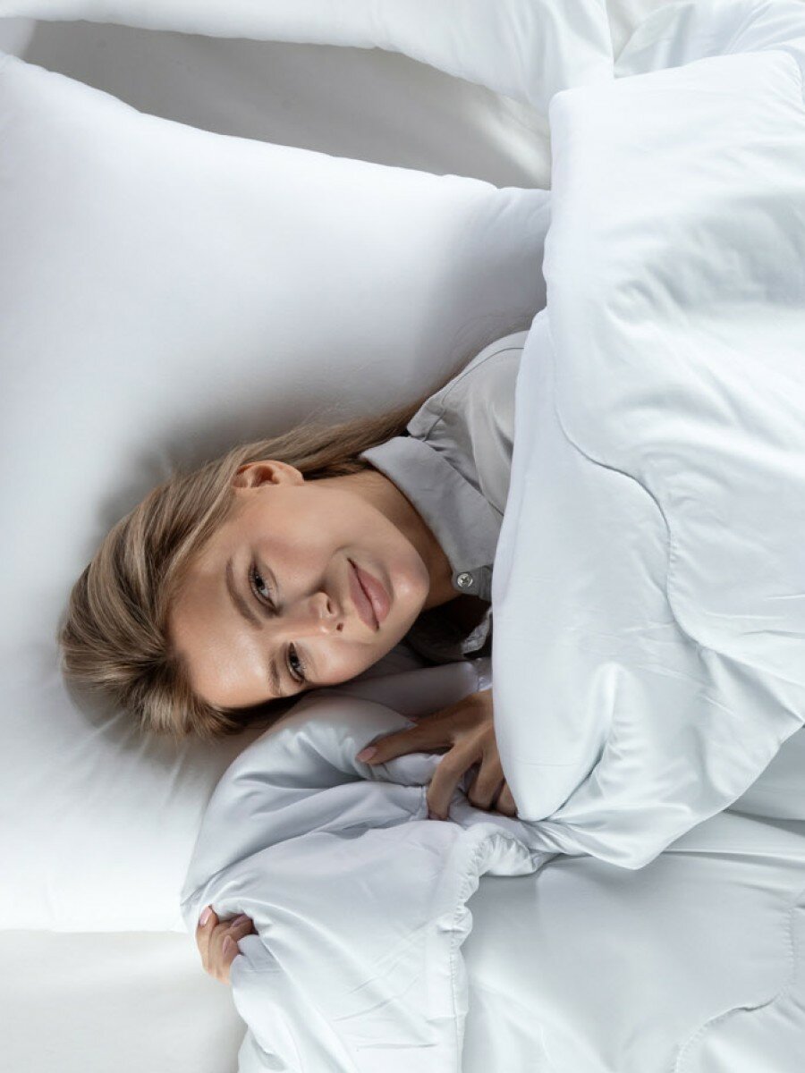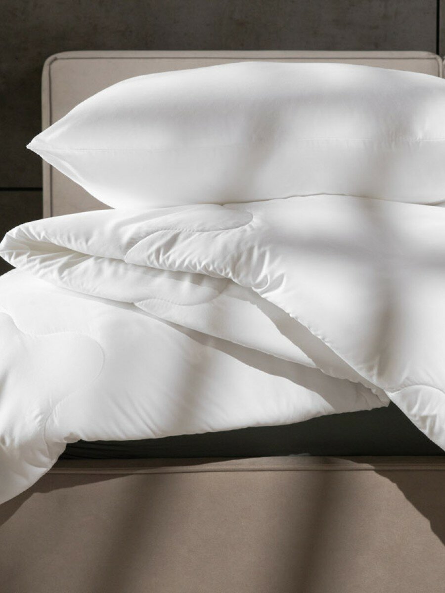 - Во-вторых, наполнитель из искусственного лебяжьего пуха равномерно распределяется внутри чехла и не скатывается, обеспечивая комфортный сон.