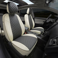 Купить Комплект авточехлов «Автопилот» Ford Focus III Sport/Titanium (Седан/Хэтчбек/Универсал) с 11г. Экокожа ромб (Белый + Черный) с доставкой по всей России.